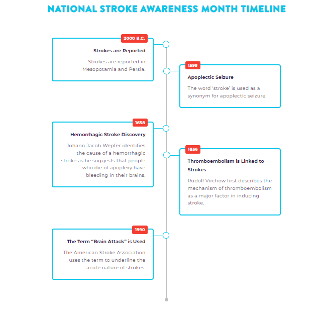 Strokes have been reported as far back as 2000 B.C. in ancient Mesopotamia and Persia. It was first described by Hippocrates as he discovered the phenomenon of sudden paralysis that is often associated with ischemia. He called the condition ‘apoplexy,’ which is Greek for ‘struck down with violence.’ In 1599, the word stroke was used as a synonym for apoplectic seizure and is a fairly literal translation of the Greek term.